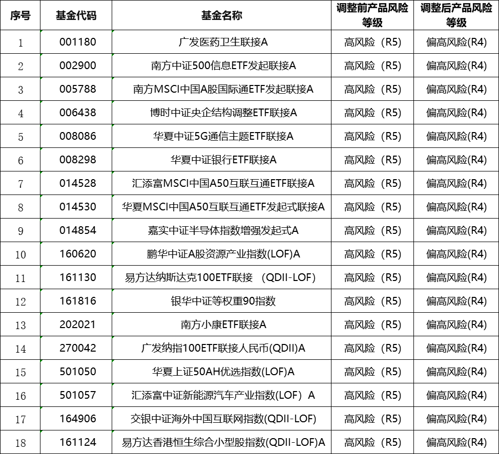 關(guān)于調(diào)整部分代銷公募基金產(chǎn)品風(fēng)險(xiǎn)等級(jí)的公告