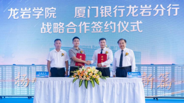 儀式上,廈門銀行龍巖分行與龍巖學(xué)院簽署戰(zhàn)略合作協(xié)議。龍巖學(xué)院經(jīng)濟(jì)與管理學(xué)院副書記、院長(zhǎng)黃可權(quán),廈門銀行龍巖分行黨委書記、負(fù)責(zé)人余勇分別代表雙方簽約。