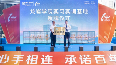 同時(shí),現(xiàn)場(chǎng)舉行龍巖學(xué)院“實(shí)習(xí)實(shí)訓(xùn)基地”授牌儀式。龍巖學(xué)院黨委委員、副校長(zhǎng)胡志彪為廈門銀行龍巖分行授牌,廈門銀行龍巖分行黨委書記、負(fù)責(zé)人余勇代表分行接受授牌。