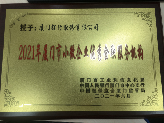 我行榮獲“2021年廈門市小微企業(yè)優(yōu)秀金融服務(wù)機構(gòu)”