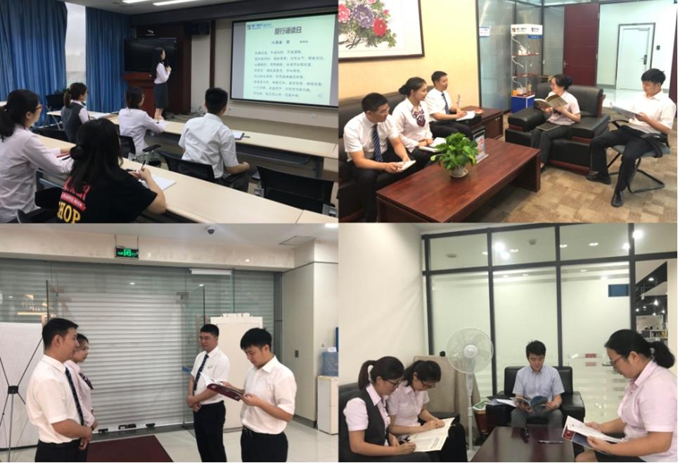 轄內(nèi)各機(jī)構(gòu)積極響應(yīng)號召,在晨會(huì)時(shí)開展誦讀活動(dòng),用朗朗誦讀聲把山城喚醒,用文字的力量,開啟一天的工作。此外,分行提倡讓會(huì)議前誦讀成為常態(tài)化,在所有會(huì)議中,參會(huì)人員須至少提前5分鐘到場誦讀,以誦讀經(jīng)典打開思想,拉開會(huì)議帷幕,把文學(xué)經(jīng)典的神韻融進(jìn)工作。同時(shí),分行各部門分別開展了誦讀分享會(huì),組織員工集體誦讀,鼓勵(lì)員工積極閱讀并分享讀后感,為其他員工推薦好書,把一篇篇文學(xué)經(jīng)典刻進(jìn)心中。本著“傳承文學(xué)經(jīng)典,培養(yǎng)誦讀習(xí)慣”的理念,分行員工自發(fā)開展了“親子齊誦讀”活動(dòng),讓“廈行誦讀日”走進(jìn)員工家庭,走進(jìn)員工生活。