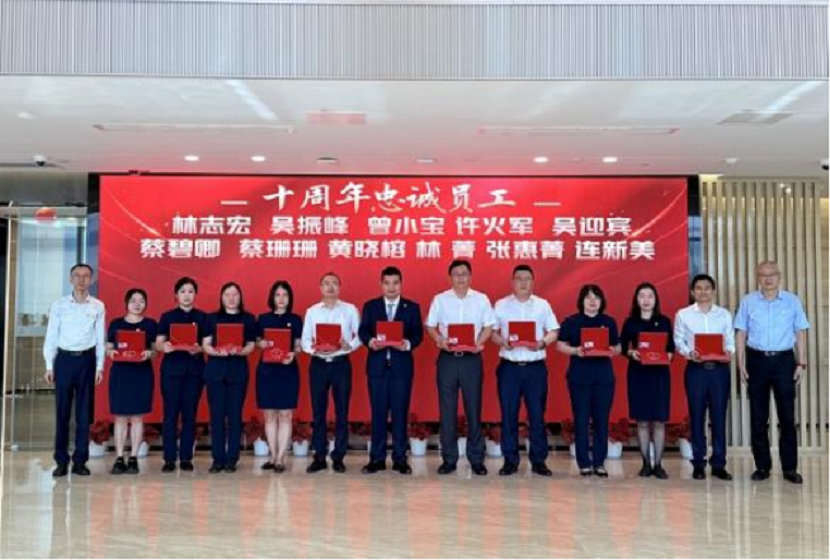 2024年11月6日上午,泉州分行舉辦2024年忠誠員工授勛儀式,黨委副書記、監(jiān)事長、工會主席王建平,黨委委員、副行長兼泉州分行黨委書記謝彤華,人力資源部(黨委組織部)副總經(jīng)理劉劍麗,泉州分行行長洪堯文,泉州分行工會主席林志宏及分行領(lǐng)導(dǎo)班子出席了儀式。