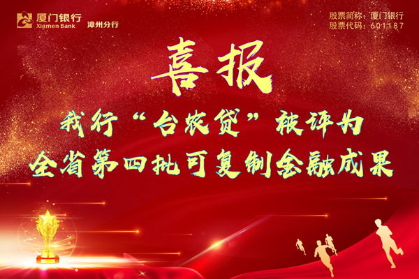 我行“臺農(nóng)貸”2022年9月在漳州進行全省首發(fā)之后,于當年12月被福建省普惠金融改革試驗區(qū)工作推進小組辦公室評為全省第四批可復制金融成果。