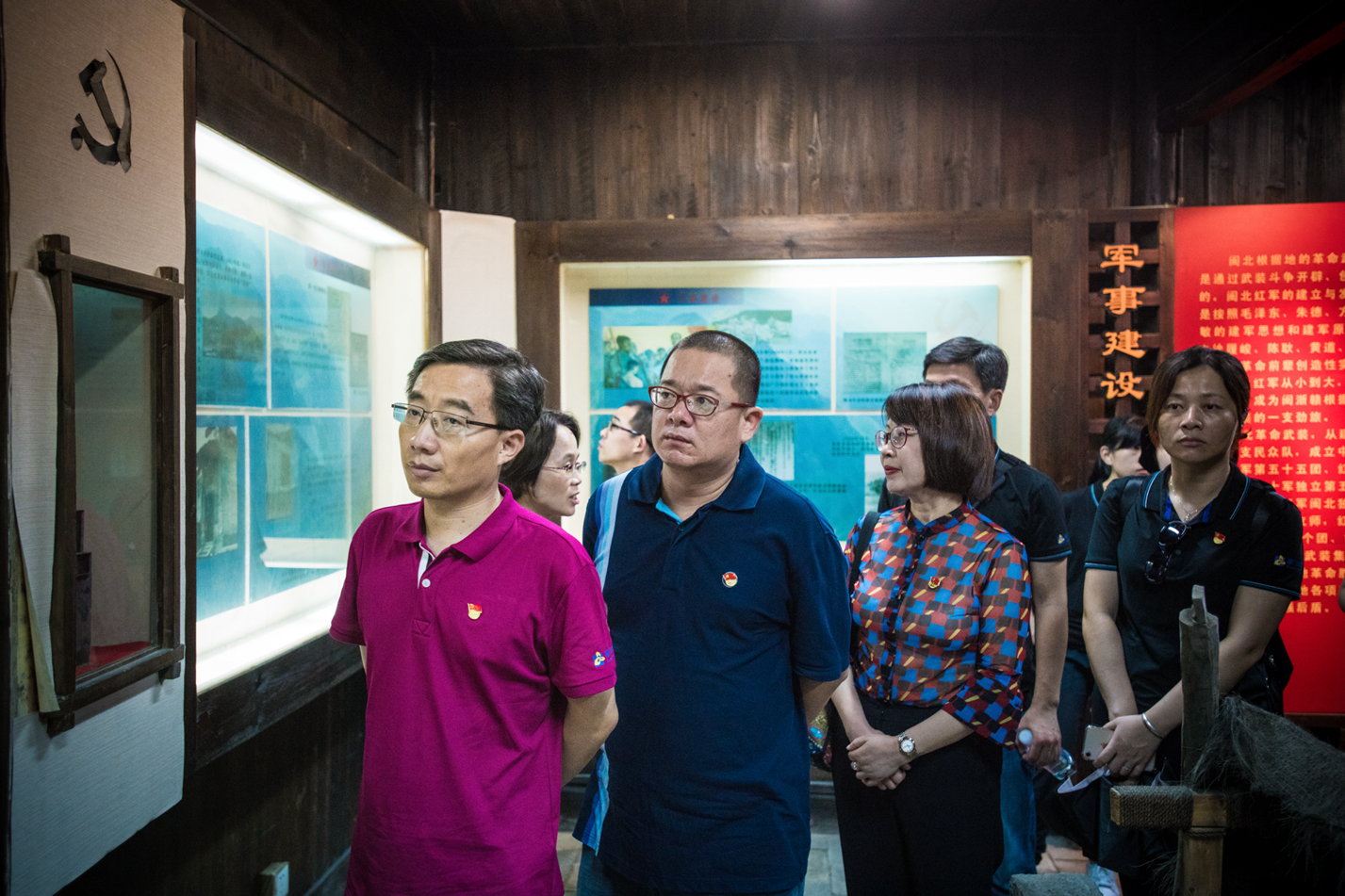 黨員同志們沿著早期共產(chǎn)黨人的足跡,瞻仰復建的閩北分區(qū)蘇維埃政府,揮舞著黨旗,領悟“紅旗永不倒”的精神。