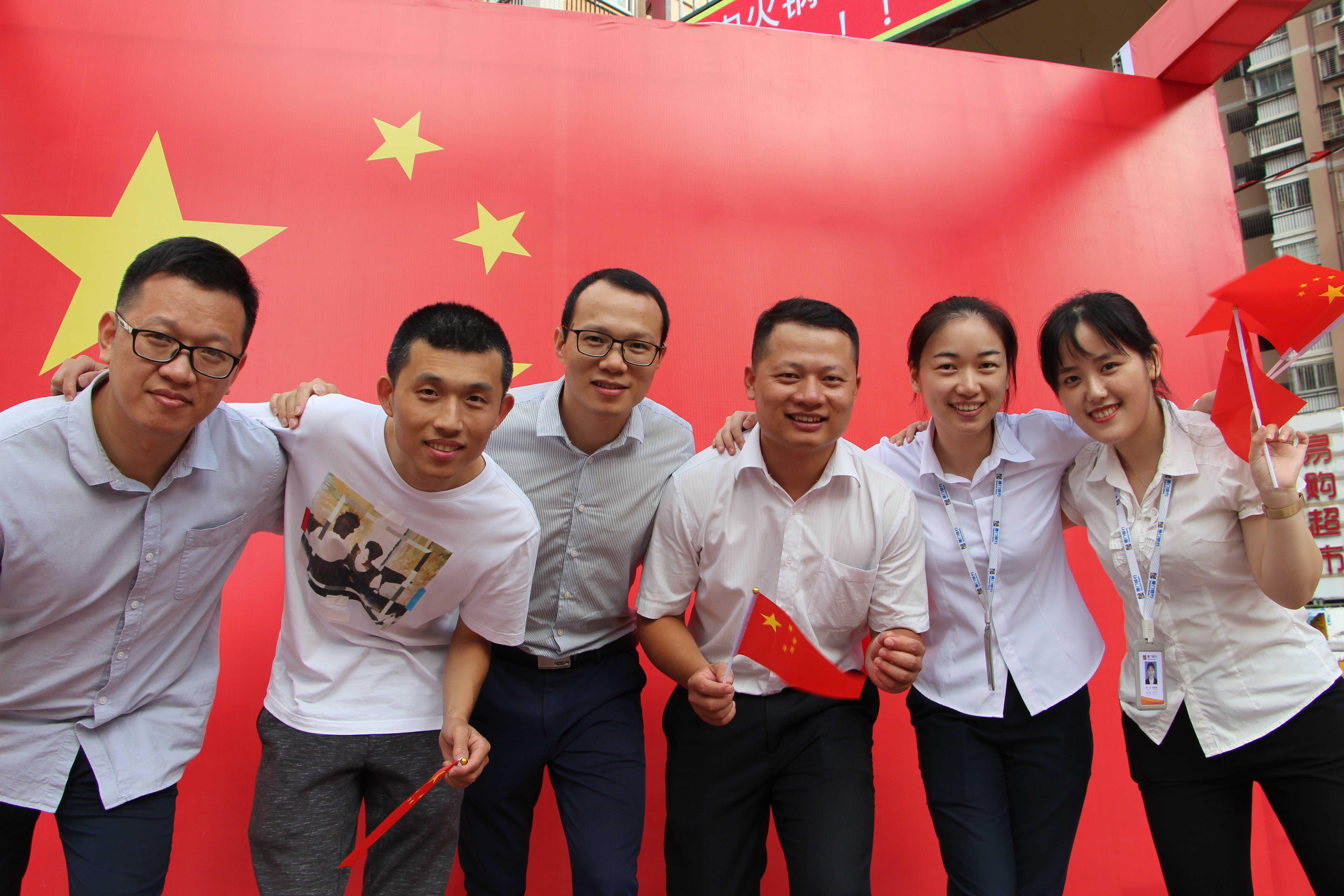 在新中國成立70周年之際,廈門銀行南平分行舉辦“國旗同框,與愛同行”活動,員工們手拿小國旗、與國旗同框,表達對新中國的深深祝福,傳遞著對新中國的無限熱愛和美好祝愿?;顒又?,大家積極踴躍,創(chuàng)意無限,以各種方式獻禮新中國。
