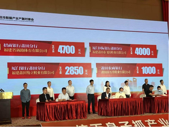 對接會上,集中簽約了16個鞋服產(chǎn)業(yè)產(chǎn)融對接項目,簽約總金額34.26億元,部分銀行介紹分享了相關(guān)金融服務(wù)產(chǎn)品,莆田分行現(xiàn)場與福建莆田笏立鞋業(yè)有限公司進行了簽約,簽約金額2850萬元。