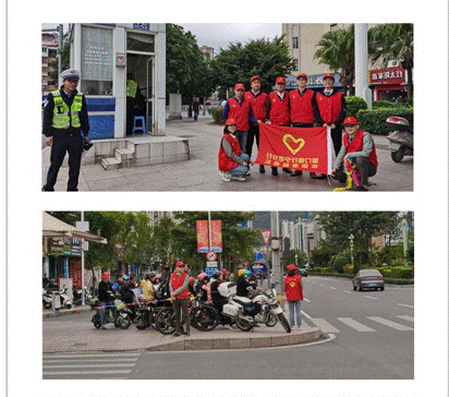 國泰路口是繁忙路段,交通復雜,車輛、行人流量大,志愿者們統(tǒng)一身穿紅色志愿服務馬甲,頭戴小紅帽,通過舉落小紅旗,勸導機動車及非機動車不要闖紅燈,引導行人走斑馬線,主動攙扶和幫助行動不便的老人過馬路,同時為過往群眾提供熱心幫助,贏得了廣大市民的好評和點贊,成為了街道路口的一道亮麗風景線。