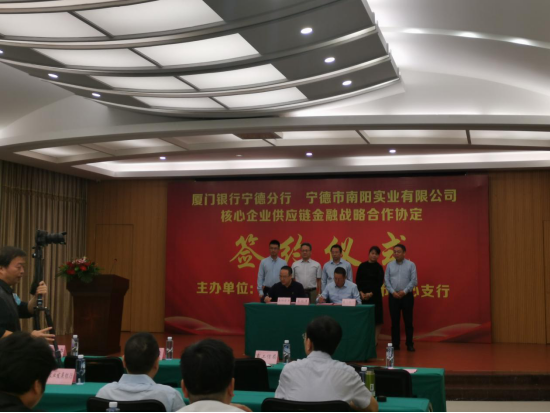 2020年10月20日,中國人民銀行寧德市中心支行舉辦核心企業(yè)供應(yīng)鏈金融戰(zhàn)略合作簽約儀式,會上,廈門銀行寧德分行與寧德市南陽實(shí)業(yè)有限公司進(jìn)行簽署戰(zhàn)略合作協(xié)議。中國人民銀行寧德市中心支行葉謝康行長,寧德市南陽實(shí)業(yè)有限公司董事長樂玉海,廈門銀行寧德分行行長王衛(wèi)東以及各銀行機(jī)構(gòu)分管領(lǐng)導(dǎo)參加簽約儀式,會議由人行寧德中支吳如乾副行長主持。