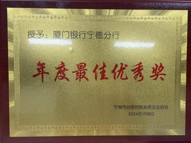 年會(huì)上,協(xié)會(huì)為部分會(huì)員頒發(fā)年度優(yōu)秀獎(jiǎng)等榮譽(yù),寧德分行獲授“年度最佳優(yōu)秀獎(jiǎng)”,省委臺(tái)辦經(jīng)濟(jì)處處長(zhǎng)魏明蒂為寧德分行頒獎(jiǎng)。獲此殊榮,是寧德臺(tái)協(xié)對(duì)寧德分行近年來(lái)對(duì)臺(tái)企臺(tái)胞金融服務(wù)工作的肯定。