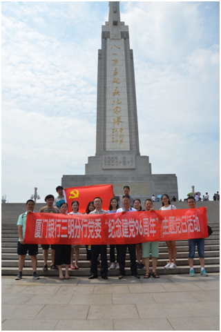 為紀(jì)念中國(guó)共產(chǎn)黨96周年華誕,繼承和發(fā)揚(yáng)黨的優(yōu)秀光榮傳統(tǒng)和優(yōu)良作風(fēng),2017年8月18日,三明分行黨委組織全體黨員干部前往“英雄城”南昌,開展” 紀(jì)念建黨96周年”主題黨日活動(dòng)。