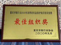 在9月22日的決賽中,經(jīng)過理論知識和視頻糾錯兩大類比拼,再綜合復(fù)賽成績,最終分行以較好的成績榮獲最佳組織獎,9個單項獎,分別是:兩江支行鄧文君獲得理財經(jīng)理序列“消保之星”及“2020年十佳理財(客戶)經(jīng)理”稱號,南岸支行張靚秋、沙坪壩支行楊琛、兩江支行張倩、大足支行李霞、分行營運管理部唐可沁分別榮獲柜員序列、大堂經(jīng)理序列和綜合序列優(yōu)勝獎;兩江支行匡安邦、渝北支行王涵嫣、分行營業(yè)部賀虹瑞榮獲優(yōu)秀獎。