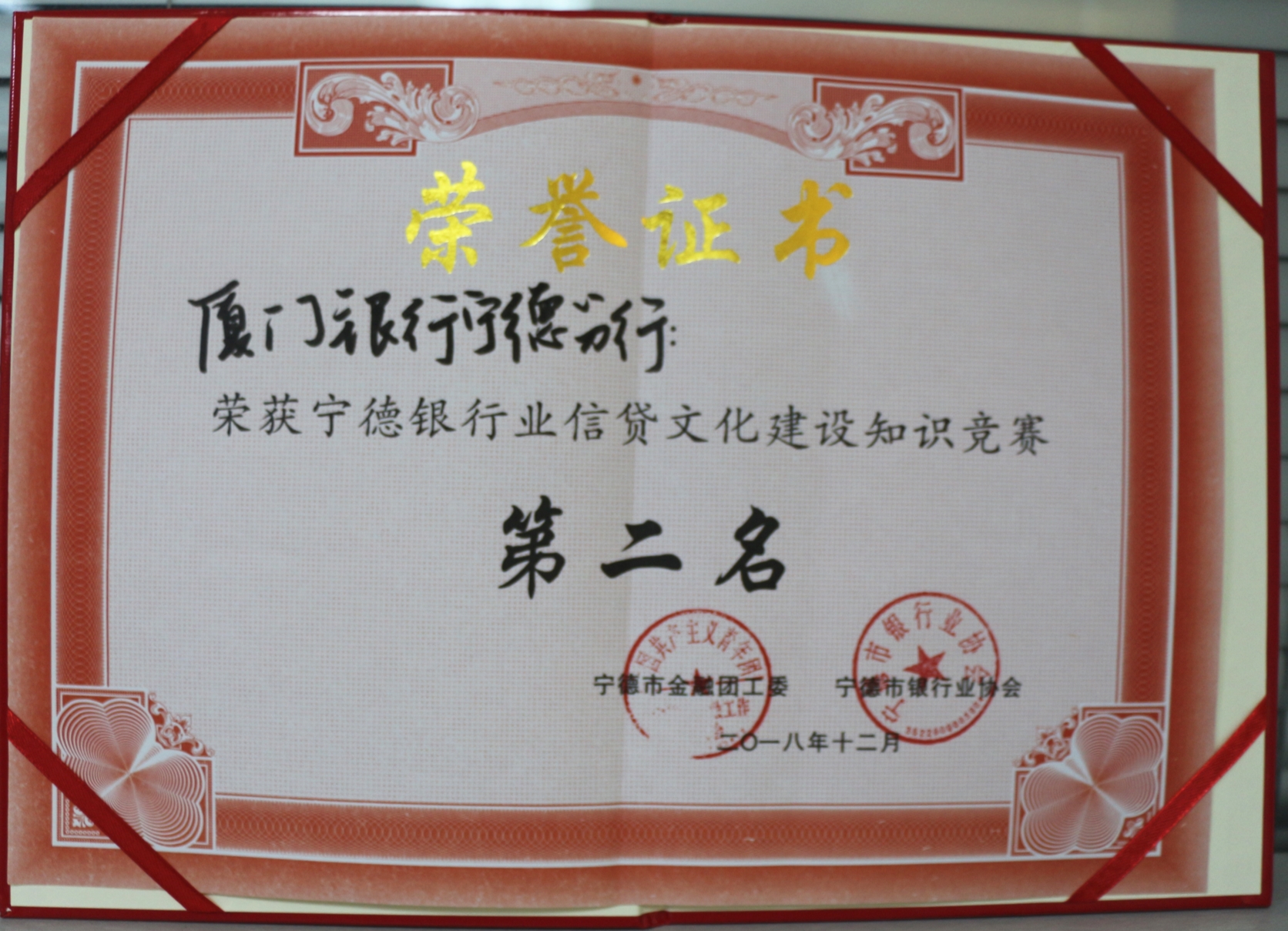 廈門銀行寧德分行喜獲信貸文化知識競賽第二名佳績