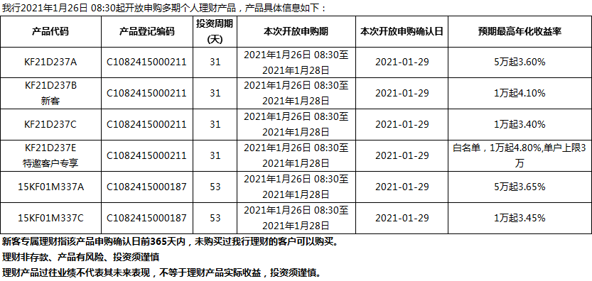 “鳳凰花”理財(cái)產(chǎn)品2021年1月26日發(fā)售信息