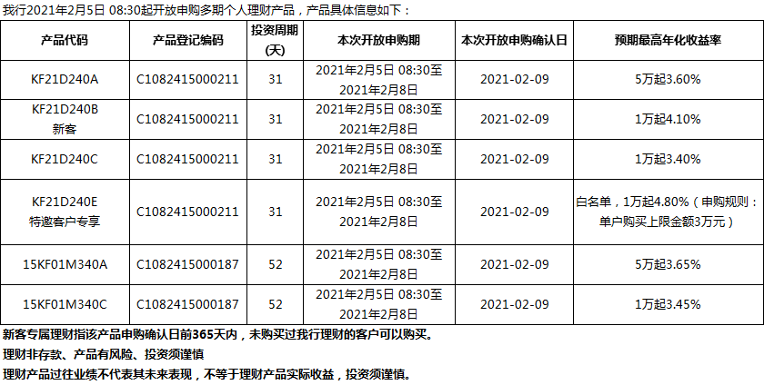 “鳳凰花”理財產(chǎn)品2021年2月5日發(fā)售信息