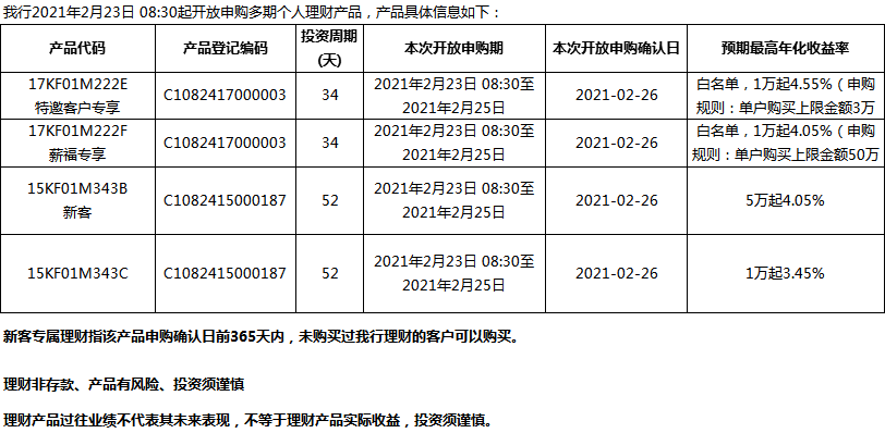 “鳳凰花”理財(cái)產(chǎn)品2021年2月23日發(fā)售信息