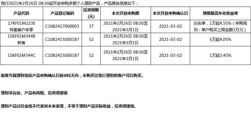 “鳳凰花”理財產(chǎn)品2021年2月26日發(fā)售信息