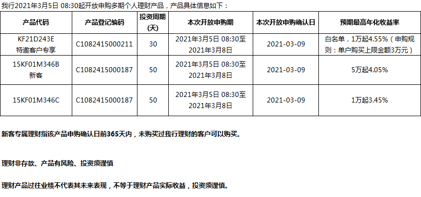 “鳳凰花”理財(cái)產(chǎn)品2021年3月5日發(fā)售信息