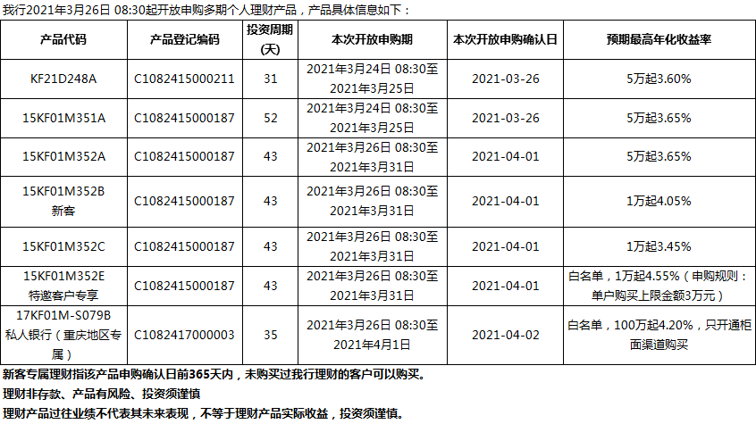 “鳳凰花”理財(cái)產(chǎn)品2021年3月26日發(fā)售信息