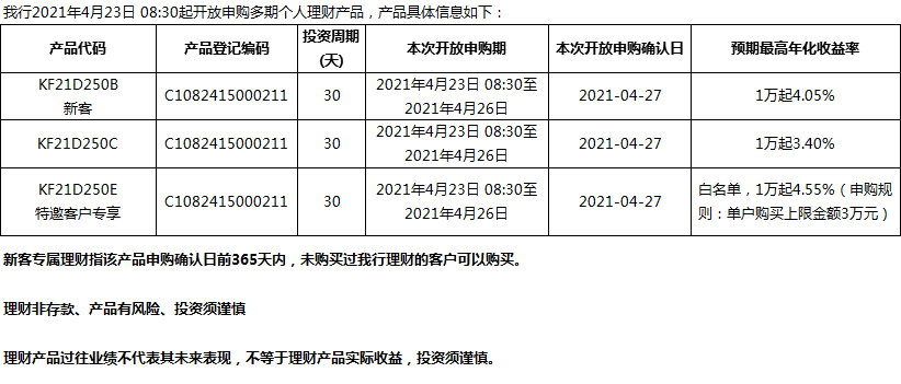 “鳳凰花”理財產(chǎn)品2021年4月23日發(fā)售信息