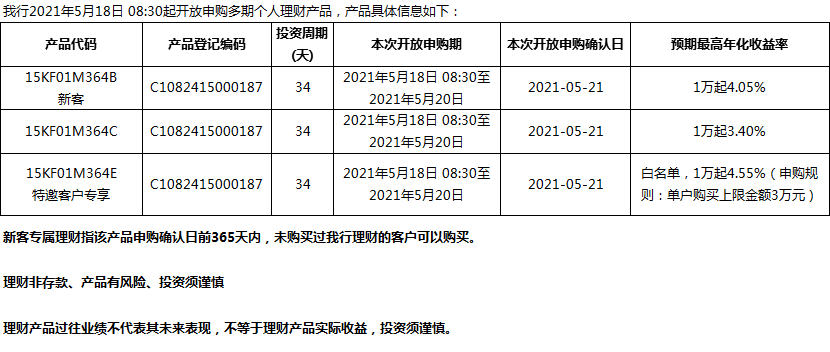 “鳳凰花”理財(cái)產(chǎn)品2021年5月18日發(fā)售信息