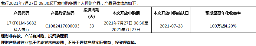 “鳳凰花”理財產(chǎn)品2021年7月27日發(fā)售信息