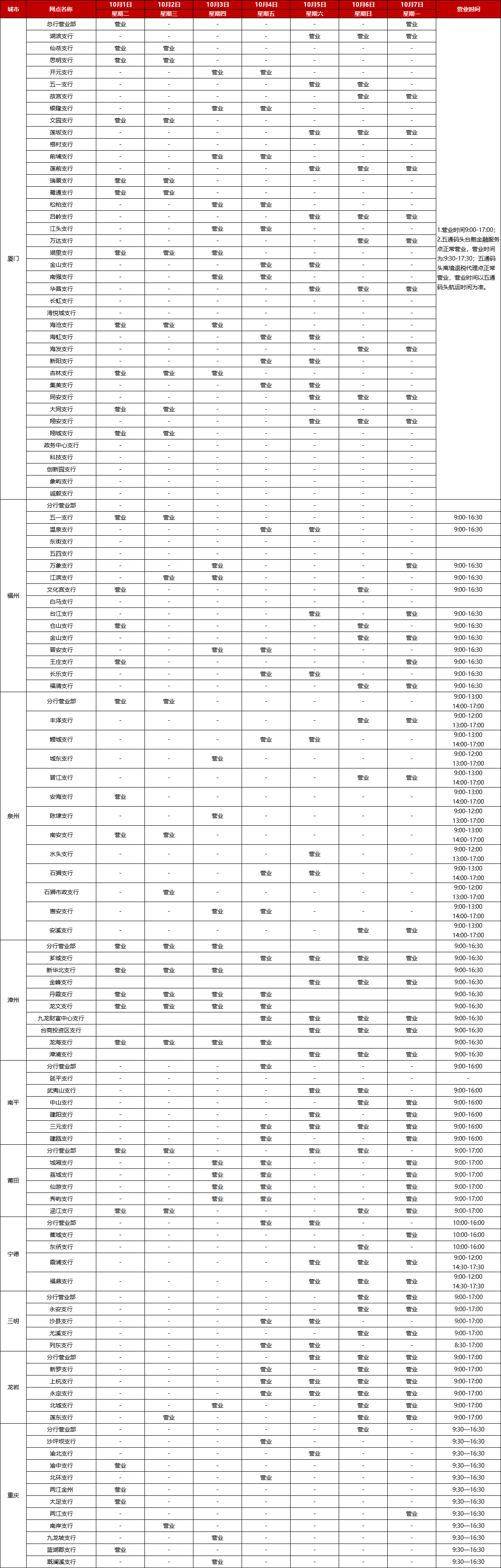 廈門銀行2024年國(guó)慶節(jié)假期網(wǎng)點(diǎn)對(duì)外營(yíng)業(yè)時(shí)間通告