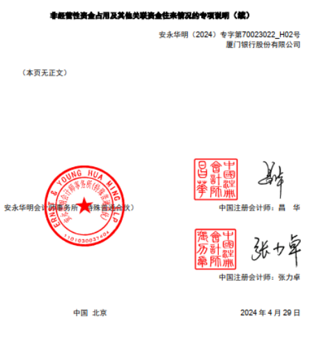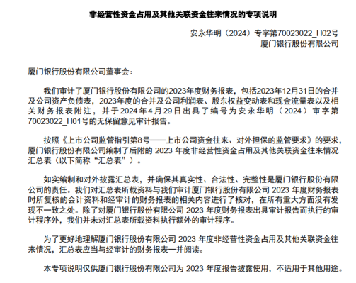 廈門銀行2023年非經(jīng)營(yíng)性資金占用及其他關(guān)聯(lián)資金往來情況