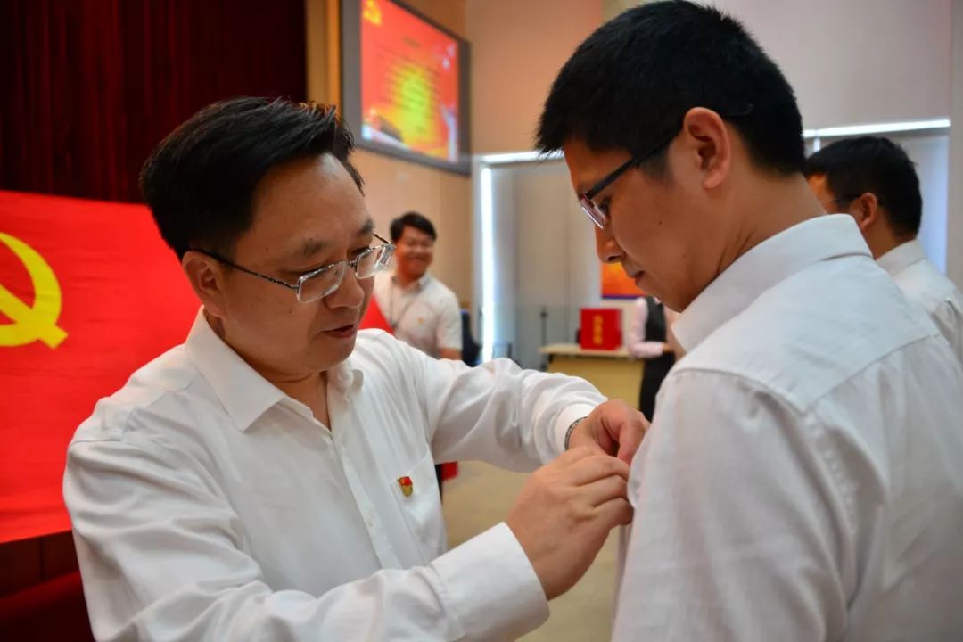 會(huì)上,黨委書(shū)記吳世群和黨委副書(shū)記張永歡為新入黨黨員佩戴黨徽,并帶領(lǐng)新黨員入黨宣誓及全體黨員代表重溫入黨誓詞。在黨的生日這一天站在黨旗下莊嚴(yán)宣誓,成為新老黨員們最神圣最重要的承諾,表達(dá)了黨員同志矢志踐行入黨初心的決心。