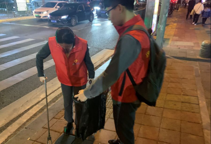 志愿者進(jìn)行垃圾拾撿,潔凈家園。