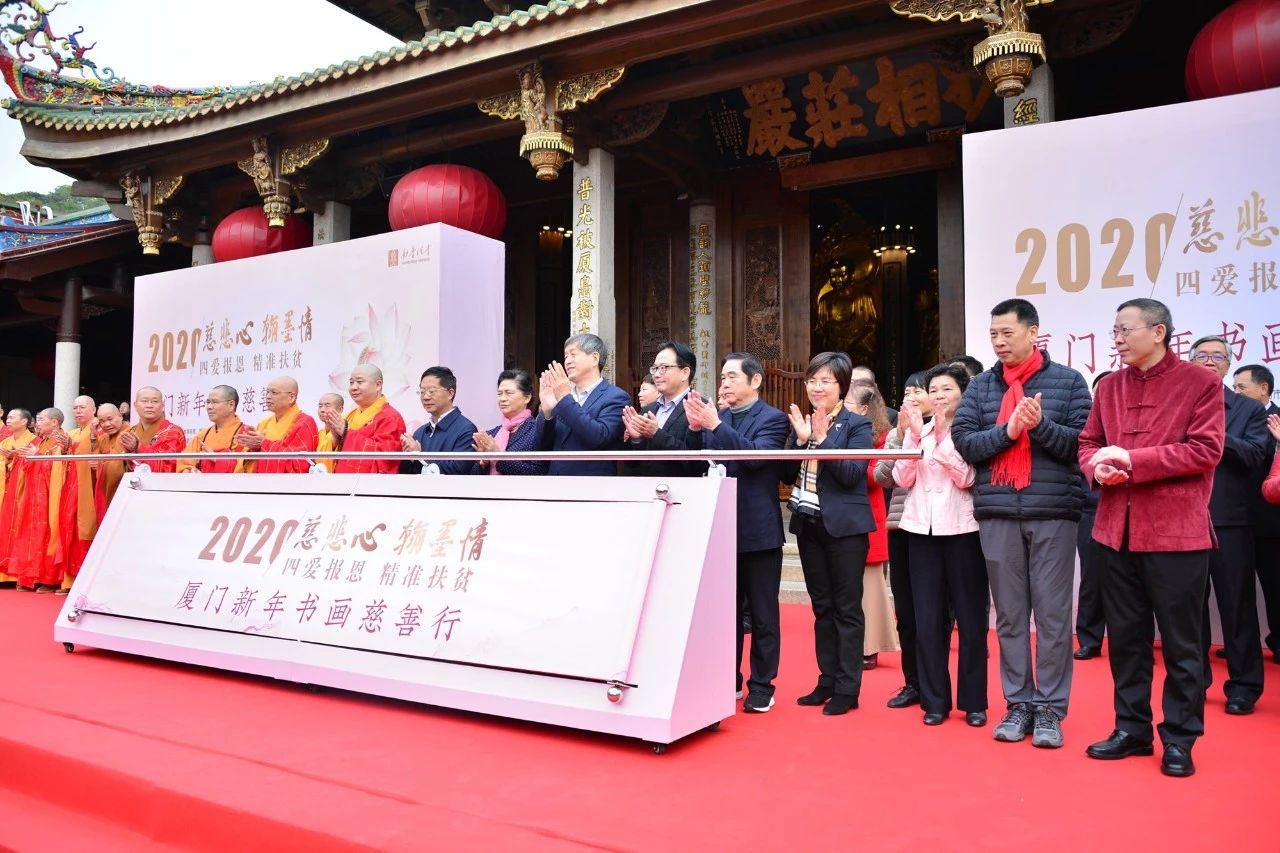 新歷元祚,千年古剎——廈門南普陀寺內(nèi)翰墨飄香,愛心滿滿。由廈門市佛教協(xié)會、廈門市書法家協(xié)會、廈門市慈善總會主辦,廈門銀行等單位協(xié)辦的2020年“慈悲心·翰墨情——廈門新年書畫慈善行”活動,拉開帷幕。市委副書記陳秋雄,市人大常委會副主任劉紹清,市政協(xié)副主席陳昌生、黃國彬等出席活動。