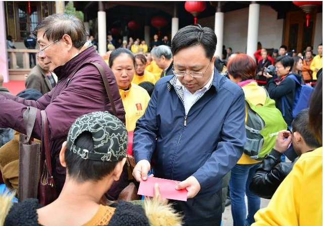 啟動儀式后,出席活動的市領(lǐng)導、大德法師以及廈門銀行吳世群董事長、張永歡監(jiān)事長等嘉賓,共同為到場的市區(qū)340位急需幫扶的困難群眾發(fā)放慰問金和慰問品,與他們一起收獲一個吉祥快樂的新年。
