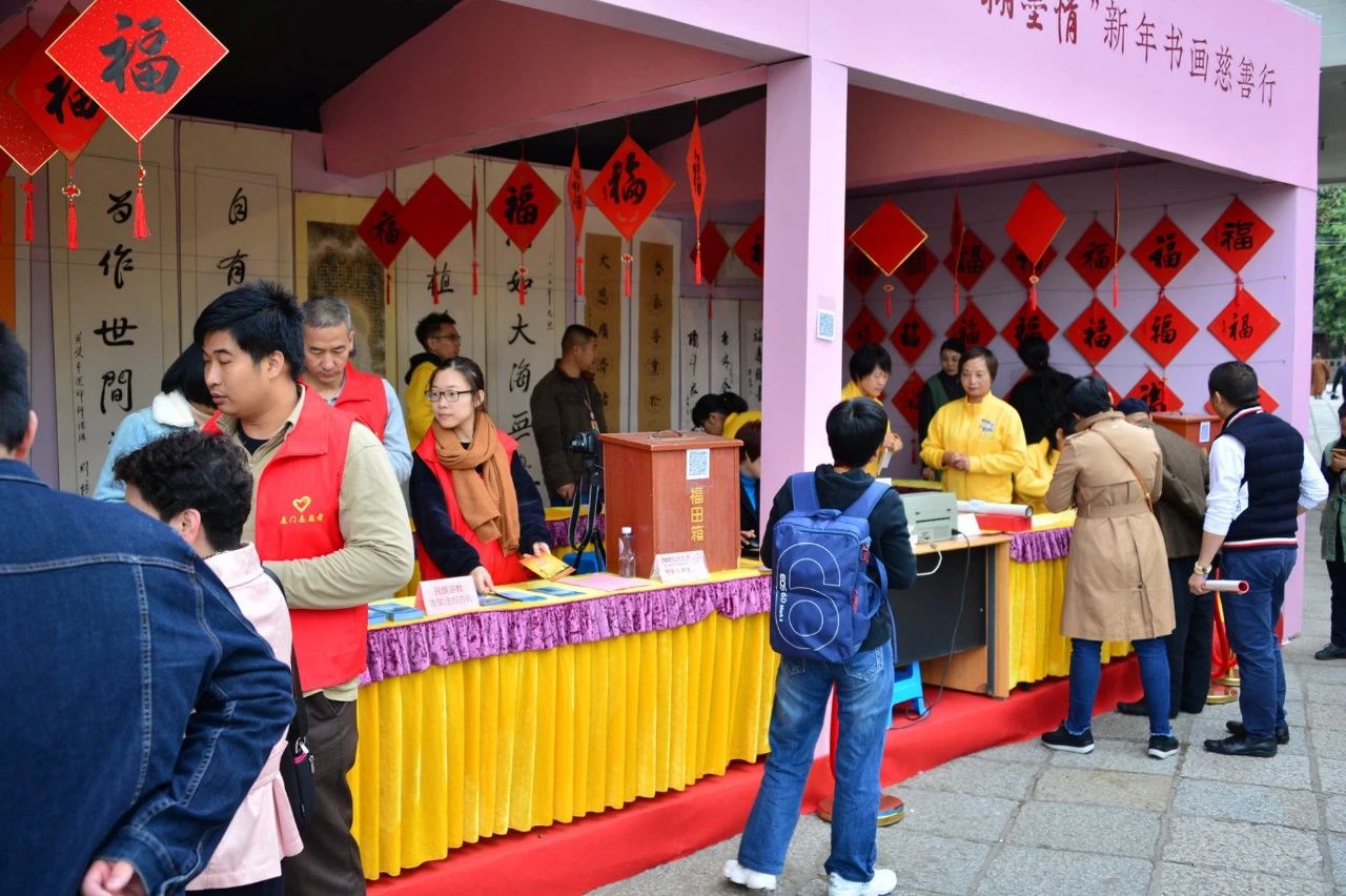 “百福迎新”這一環(huán)節(jié)是今年一個小亮點,則悟大和尚等10位高僧大德以及劉堆來、陳美祥等10位書法藝術(shù)家,每人寫就5張福字,形成“百福迎新”的盛況,愛心人士可把“?!闭埢丶?,讓愛心又添了一份新年喜慶。義賣現(xiàn)場還有市慈善總會的掛歷、則悟大和尚祝福字帖以及驚喜小禮物相送。