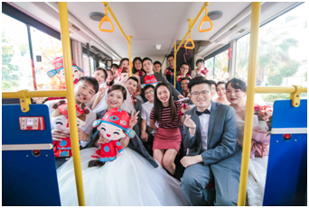 一早,異地新人在家屬的陪伴下坐上了專屬的幸福巴士,領(lǐng)略環(huán)島風(fēng)光,認(rèn)識美麗新廈門,更收獲了一份意外祝?!獜B門地區(qū)支行的同事驚喜現(xiàn)身,為新人們獻(xiàn)歌、獻(xiàn)花,送上寓意“早生貴子”的甜湯,歡聲笑語一路飄揚(yáng)。