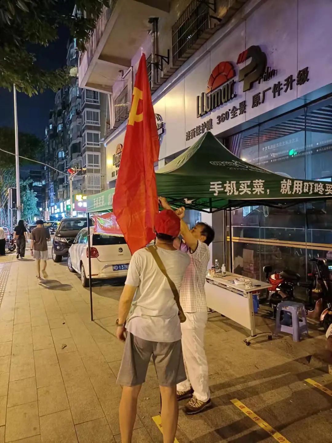 一面黨旗,一份擔(dān)當(dāng)。廈門銀行的黨員、團(tuán)員帶頭走進(jìn)無物業(yè)管理小區(qū),協(xié)助社區(qū)開展小區(qū)進(jìn)出居民的體溫測(cè)量、健康碼和通行證檢查等工作。當(dāng)晚,該小區(qū)一位老黨員特別為檢測(cè)點(diǎn)送來一面黨旗,并對(duì)志愿者的行動(dòng)表示感謝。