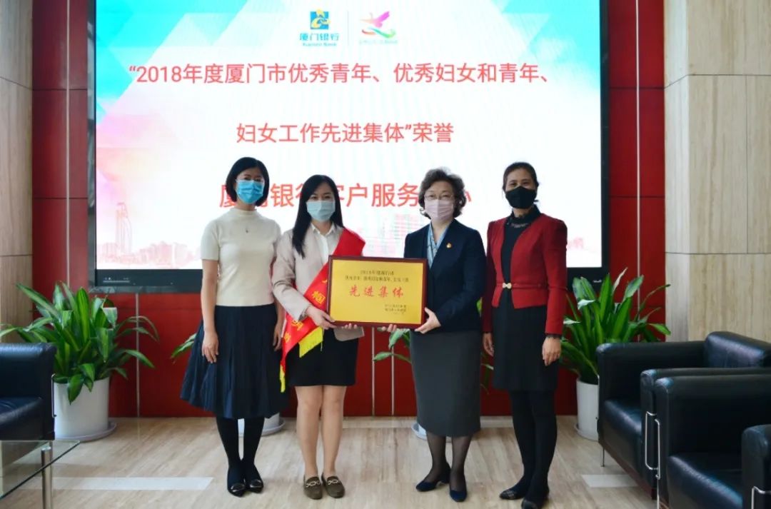 發(fā)揮典型引領(lǐng)作用,展現(xiàn)最美巾幗擔(dān)當(dāng)。325日,廈門市婦聯(lián)楊琪主席、市直機(jī)關(guān)黨工委陳瑞芬委員一行蒞臨廈門銀行,為我行客戶服務(wù)中心榮獲“2018年度廈門市婦女工作先進(jìn)集體”進(jìn)行授牌,并送來了娘家人的關(guān)愛和祝福。