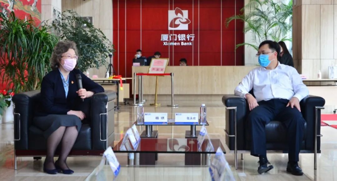 授牌儀式后,楊琪主席、陳瑞芬委員一行聽取了廈門銀行在疫情期間我行抗疫工作、復(fù)工復(fù)產(chǎn)等情況的報告。張副書記表示,疫情暴發(fā)后,廈門銀行認(rèn)真遵照黨中央和國務(wù)院、福建省委省政府、廈門市委市政府的部署,第一時間成立了應(yīng)對小組,推出了一系列金融服務(wù)保障的舉措,在做好自身疫情防控的同時,踐行企業(yè)社會責(zé)任,為企業(yè)復(fù)工復(fù)產(chǎn)提供多種保障。不僅如此,廈門銀行針對婦女群體,特別推出 “巾幗創(chuàng)業(yè)貸”之復(fù)工助力貸產(chǎn)品,用心、用情服務(wù)好女企業(yè)家,幫助女企業(yè)家順利復(fù)工復(fù)產(chǎn)。