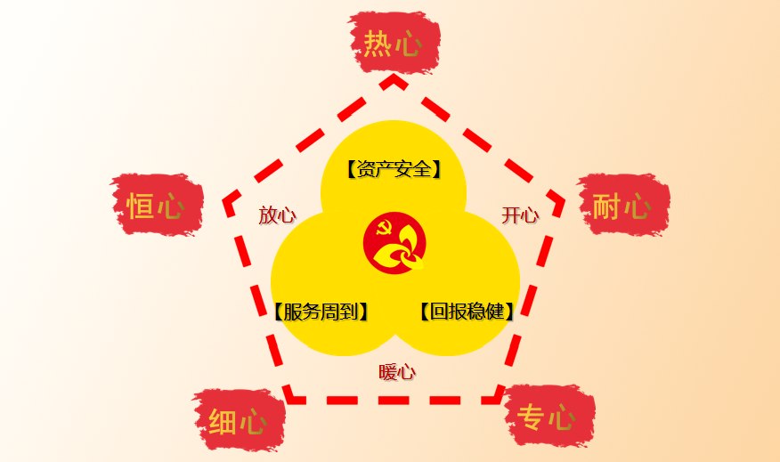 海滄支行黨支部全體黨員先鋒及全體員工將“五心”精神落到工作實處。業(yè)務(wù)團隊始終做到了“資產(chǎn)安全+周到服務(wù)”讓客戶“放心”,“資產(chǎn)安全+回報穩(wěn)健”讓客戶“開心”,“服務(wù)周到+回報穩(wěn)健”讓客戶“暖心”。