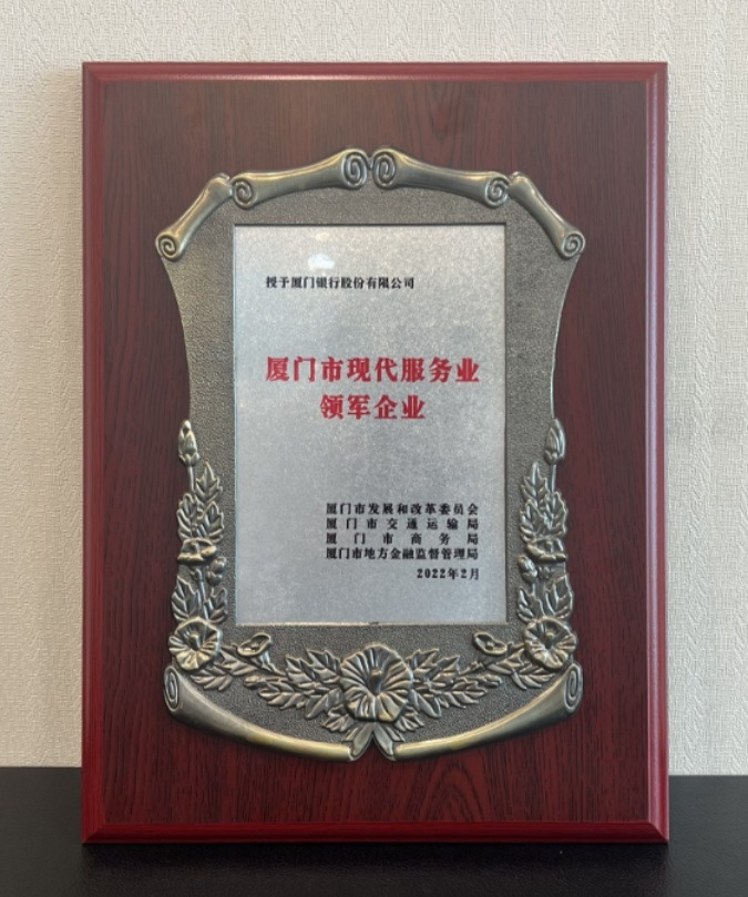 廈門銀行榮獲“廈門市現(xiàn)代服務(wù)業(yè)領(lǐng)軍企業(yè)”