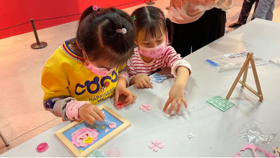 開展當天,廈門銀行現(xiàn)場舉辦兩岸親子黏土DIY活動。小朋友們觀展后,渾身的藝術(shù)細胞似受到了啟發(fā),拿起五顏六色的黏土,與父母一起,或創(chuàng)作只有自己能看懂的“藝術(shù)品”,或制作可愛的“花兒寶寶”;不少在陸臺籍客戶也攜子女應(yīng)邀到場,小朋友和大朋友們歡笑不斷,其樂融融。