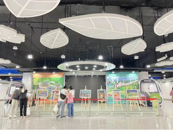 廈門銀行本次還與福州地鐵合作策劃推出了特展。特展與大展同日啟幕,精選本屆大展中的十余幅作品,在福州地鐵南門兜站中庭展出,以童畫裝點市民朋友的出行之旅。本是匆匆趕車的人們紛紛放慢腳步,跟隨孩子們的畫筆,一探不同“家”的特色。