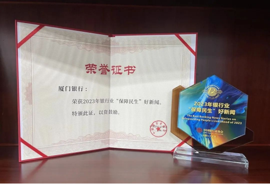 廈門銀行榮獲2023年銀行業(yè)“保障民生”好新聞