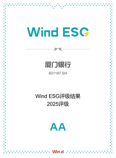 廈門(mén)銀行Wind ESG評(píng)級(jí)躍升至AA級(jí)