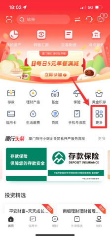 廈門銀行APP融E收菜單入口